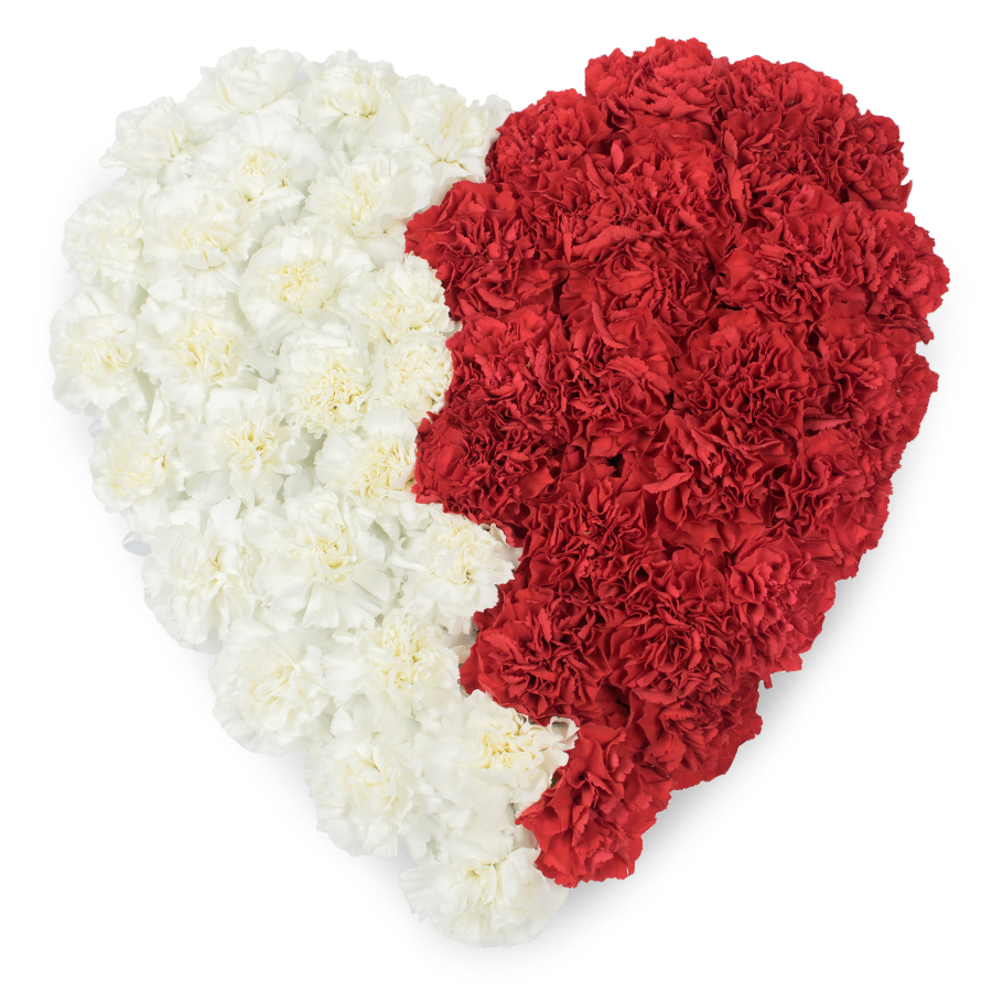 Experience the exquisite beauty of our Heart-Shaped Mixed Carnations Bouquet, expertly crafted by Handy Flowers. This stunning arrangement showcases a perfect fusion of white and red carnations, symbolizing purity and deep emotions – ideal for conveying your heartfelt sympathy.