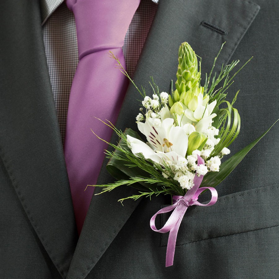 WHITE ALSTROEMERIA GROOM BUTTONHOLE£80.00